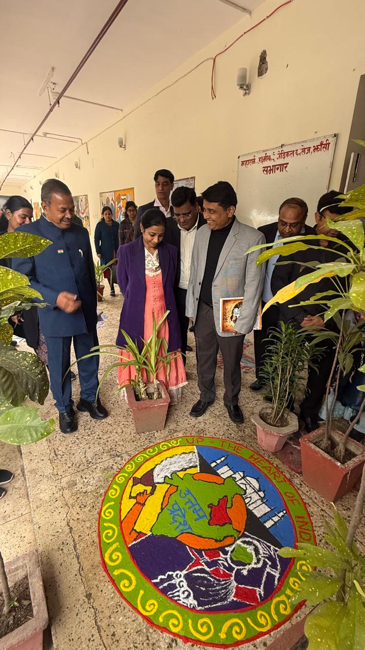 झांसी | 24 जनवरी 2025 को महारानी लक्ष्मी बाई मेडिकल कॉलेज झांसी में उत्तर प्रदेश स्थापना दिवस का आयोजन हुआ इस कार्यक्रम की शुरुआत प्रधानाचार्य प्रो डॉ शिव कुमार और उप-प्रधानाचार्य प्रो डॉ मयंक सिंह ने दीप प्रज्जवलित था। कर किया। गार्गी, अंजली, प्रियंका, हर्षिता ने स्वागत नृत्य प्रस्तुत किया। प्रियानी, मानसी, खुशबू ने कथक नृत्य की प्रस्तुति दी। हर जिला मेडिकल कॉलेज गुंडाराज नहीं कानूनराज तथा 1090- लड़कियों की सुरक्षा को केंद्र में रखकर छात्र-छात्राओं ने नाटक का मंचन किया। इसी श्रृंखला में छात्र-छात्राओं ने श्री राम-सीता जी, श्री राधा-कृष्ण, शिव-पार्वती, हरिवंशराय बच्चन, प्रेमचंद, रानी लक्ष्मीबाई, मंगल पांडे, चंद्रशेखर आज़ाद, कबीरदास, तुलसीदास, मेजर ध्यानचंद, बिस्मिल्लाह खान उत्तर प्रदेश के रत्नों की झाँकी दिखाई। इस अवसर पररांगोली प्रतियोगिता (विजेता – त्रिंशिता चौधरी, राखी कुशवाहा / उपविजेता – शिखा प्रताप, रिया अग्रवाल) तथा पोस्टर मेकिंग – (विजेता – अनुष्का गोयल, सुचारिता शाक्य “उपविजेता- हिमानी सिंह, दिव्यांशी गौर, मुस्कान) प्रतियोगिता का आयोजन हुआ।